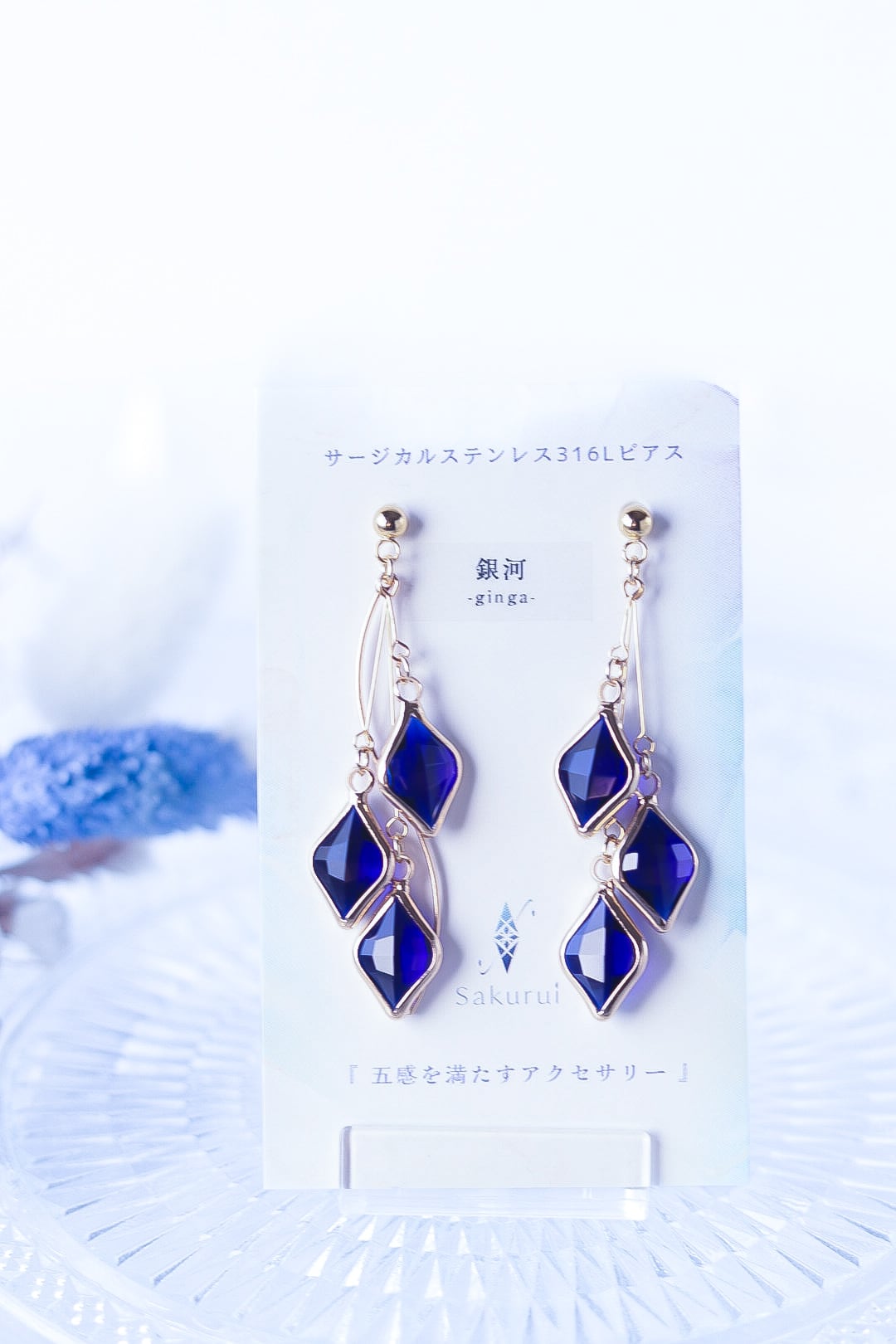 *ガラスパーツになりますので、透かした際/台紙がある際/太陽光に当てた時/など、色の見え方がそれぞれ変化します。それも楽しんで頂けましたら幸いです。