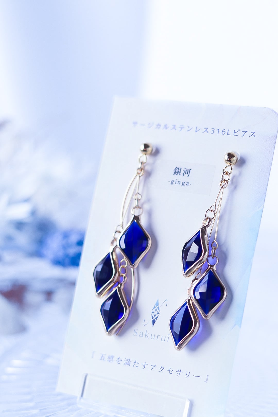 *細いピアノ線を使っているため絡まることがあります。1度耳飾りを振って元の位置にお戻し下さい。