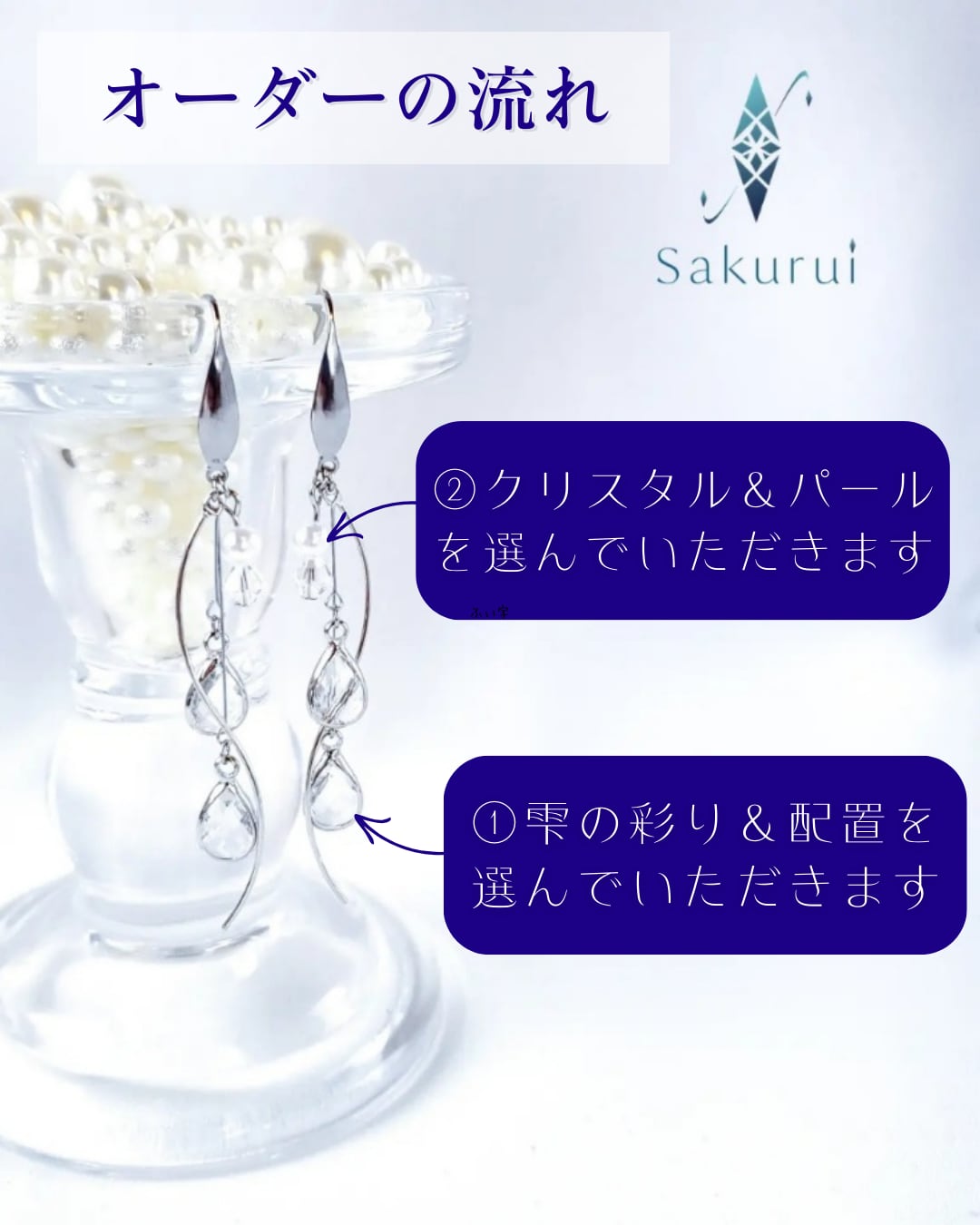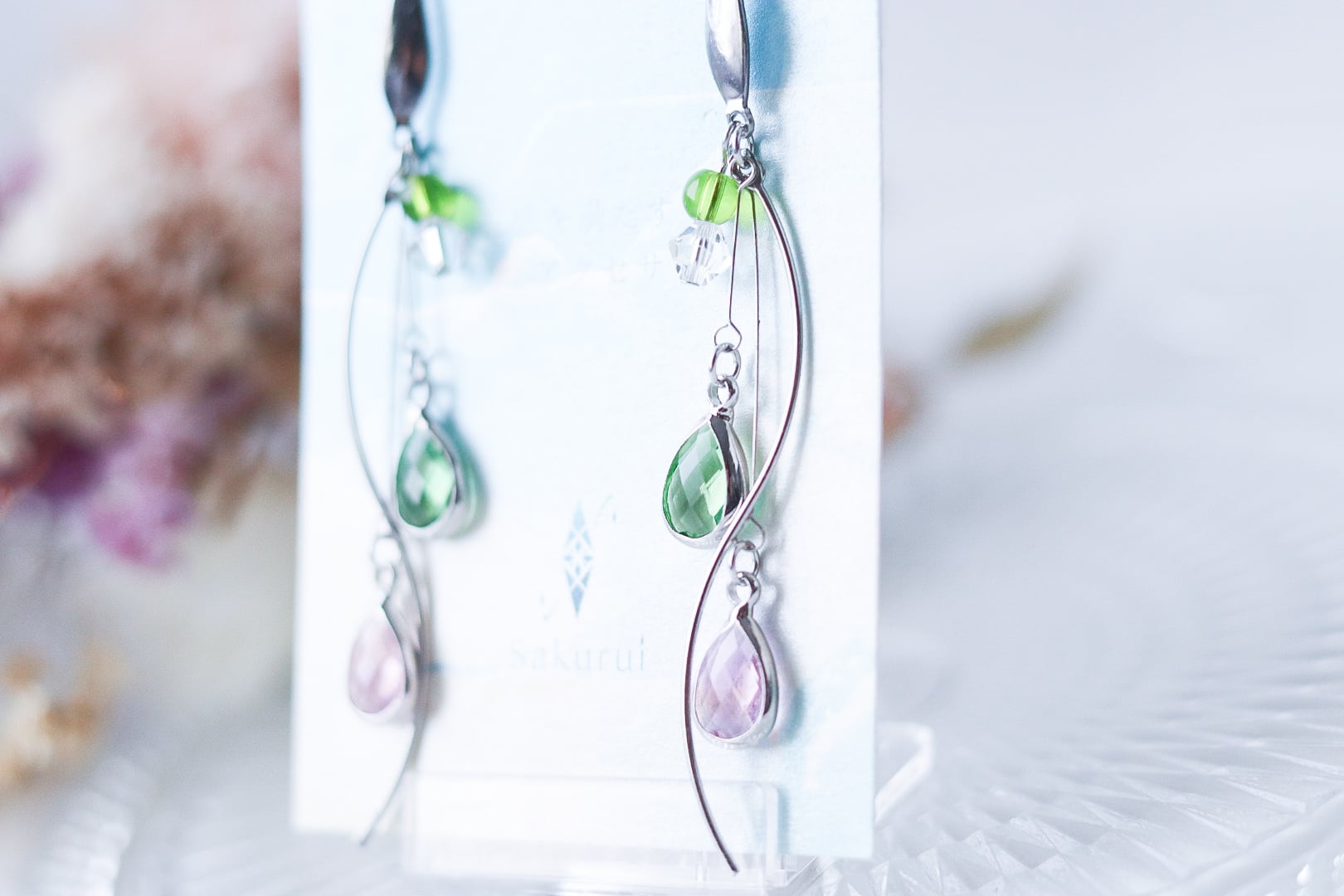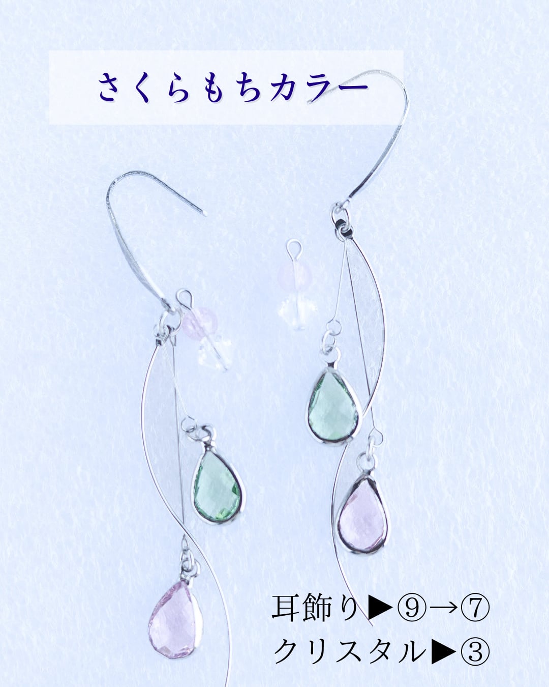 *細いピアノ線を使っているため絡まることがあります。1度耳飾りを振って元の位置にお戻し下さい。