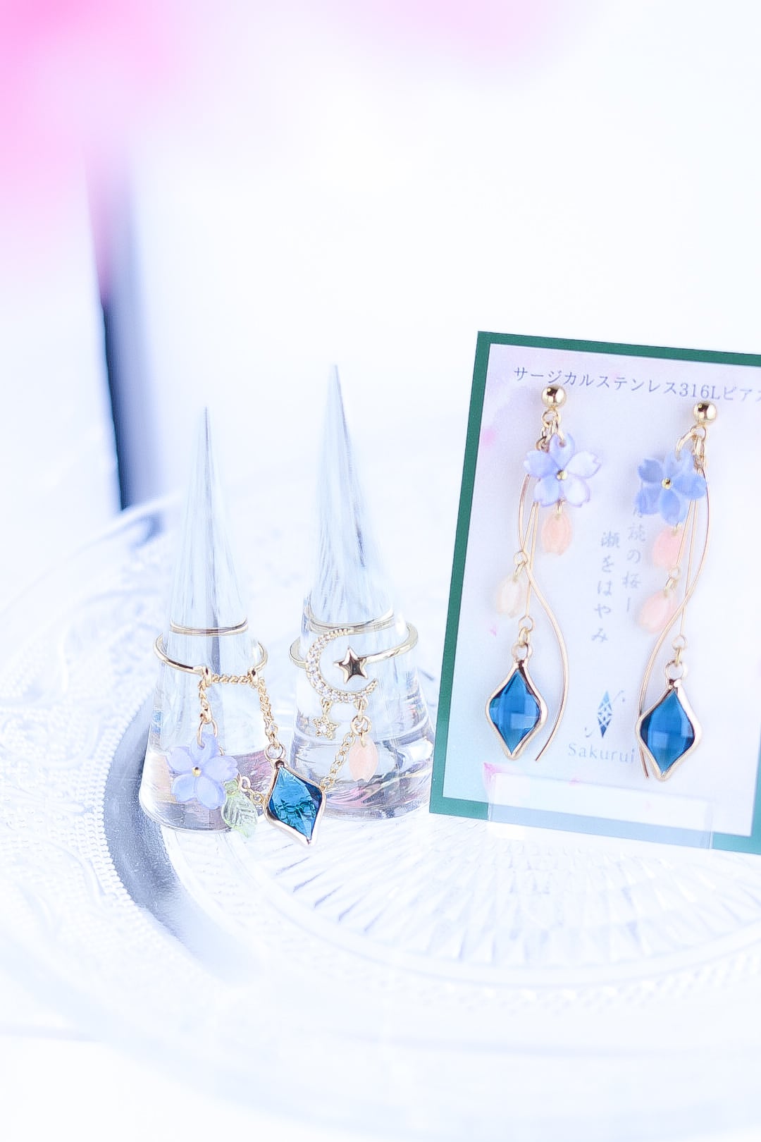 *細いピアノ線を使っているため絡まることがあります。1度耳飾りを振って元の位置にお戻し下さい。