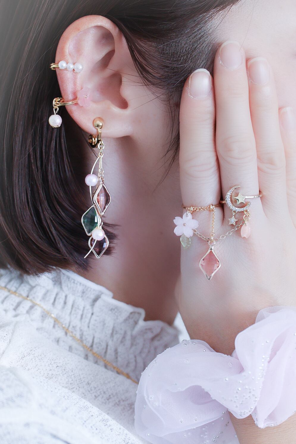 耳飾りと共に、指先とペアでつけて頂ける作品になっております。
