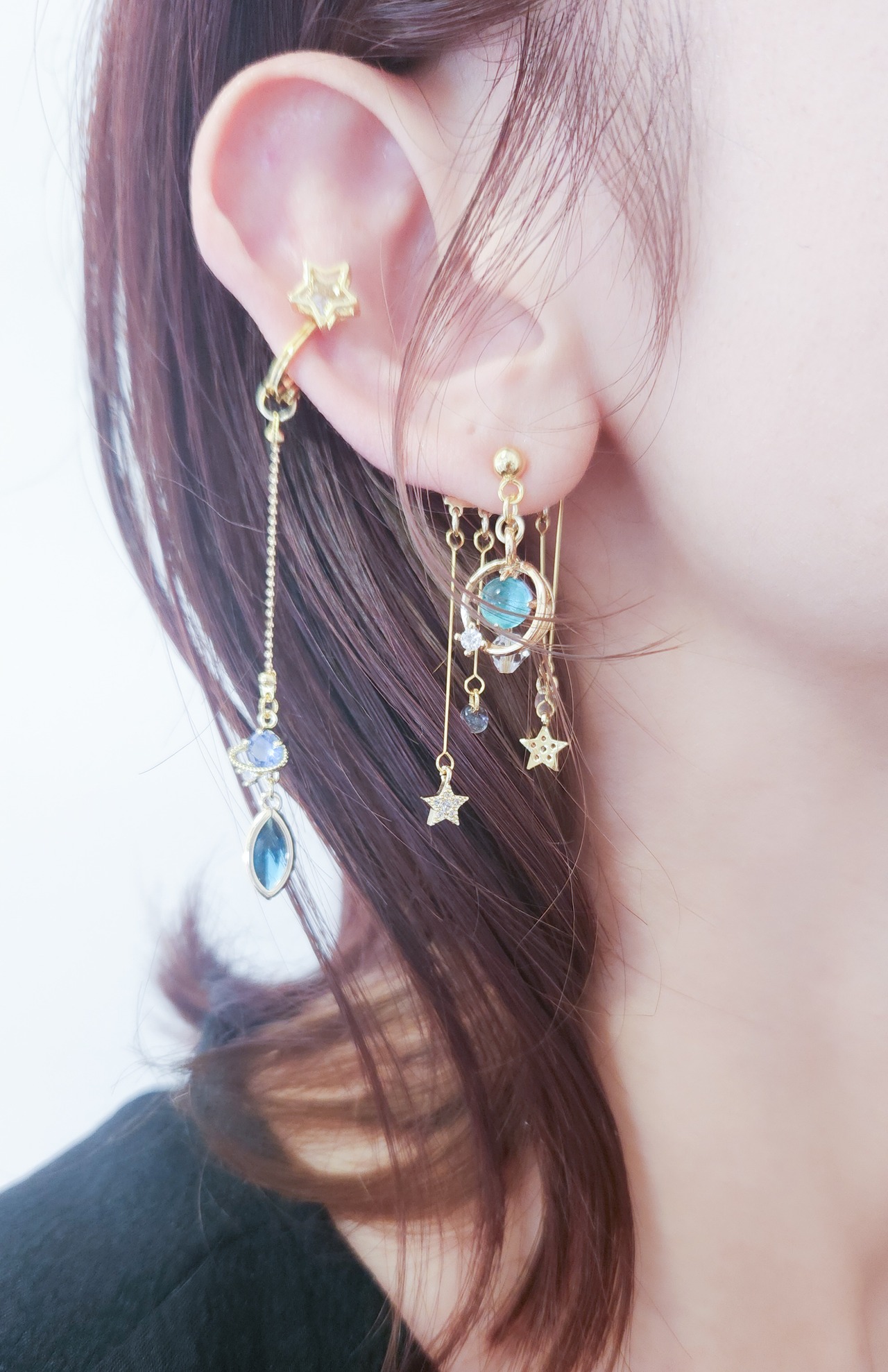 零れ星と合わせてつけるとコーデが華やかになり、おすすめのコーデです