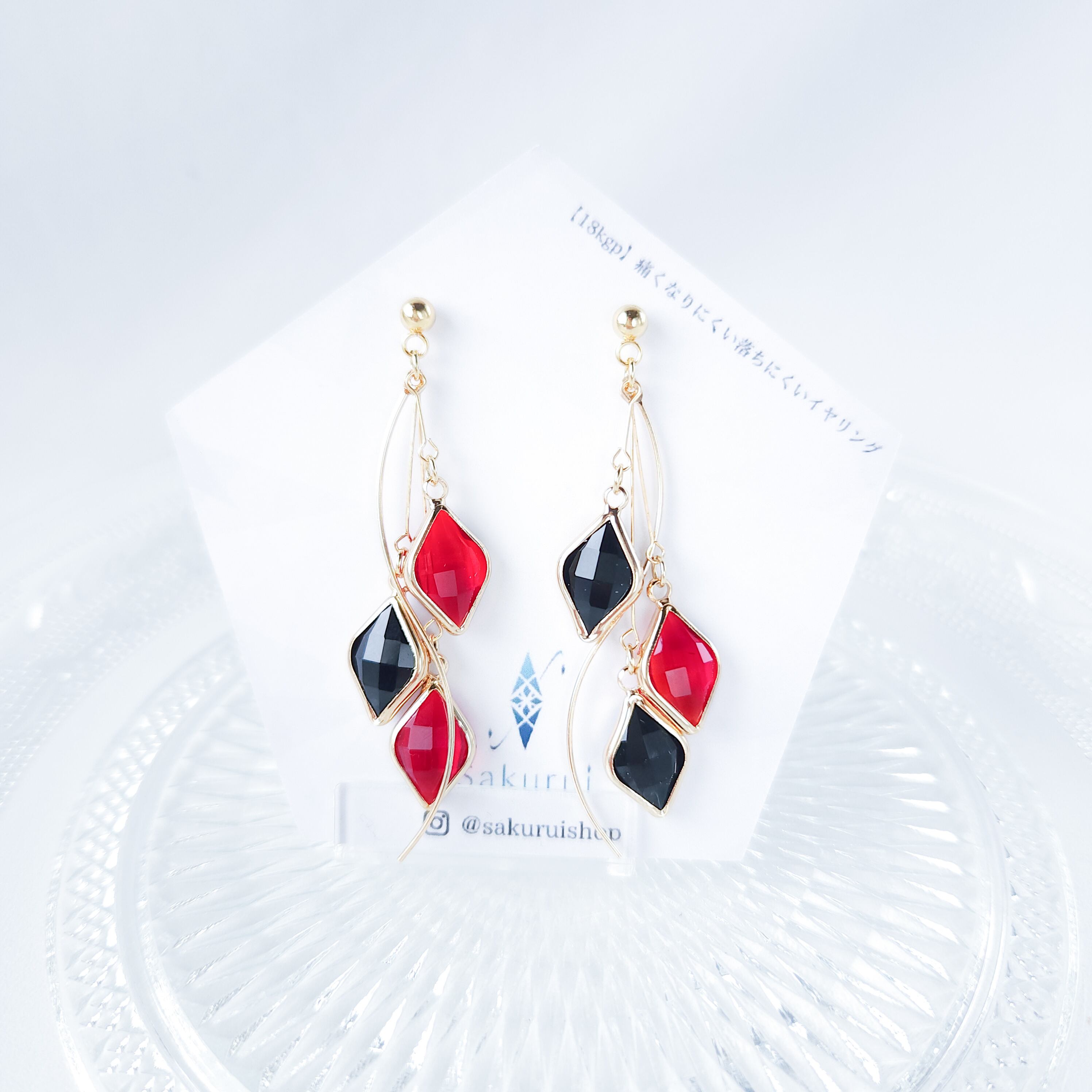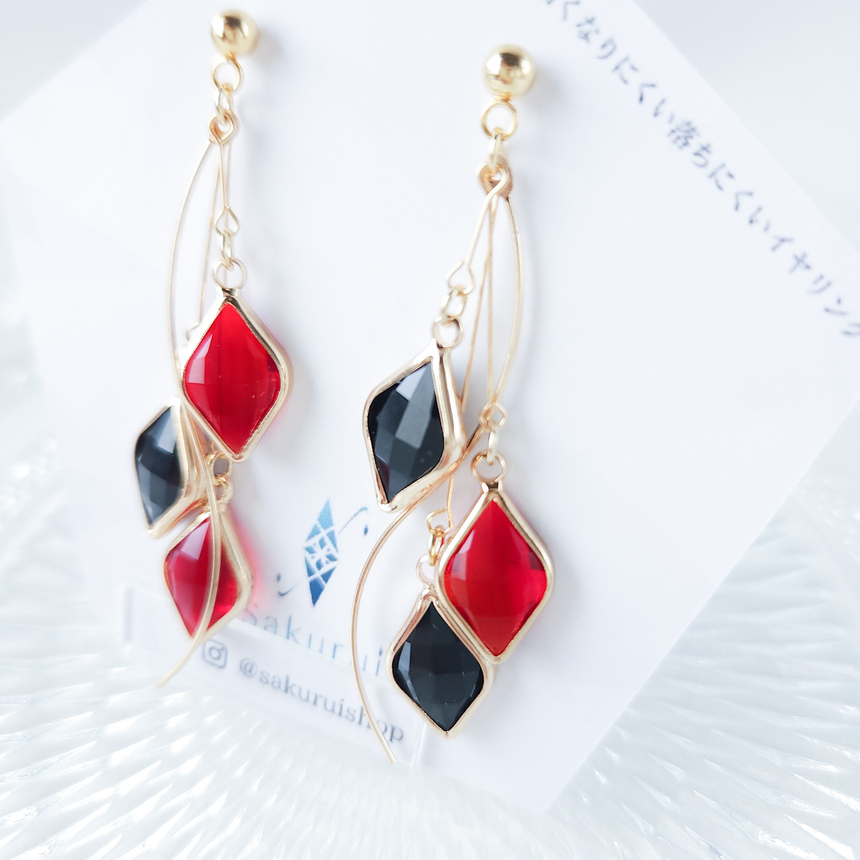*細いピアノ線を使っているため絡まることがあります。1度耳飾りを振って元の位置にお戻し下さい。