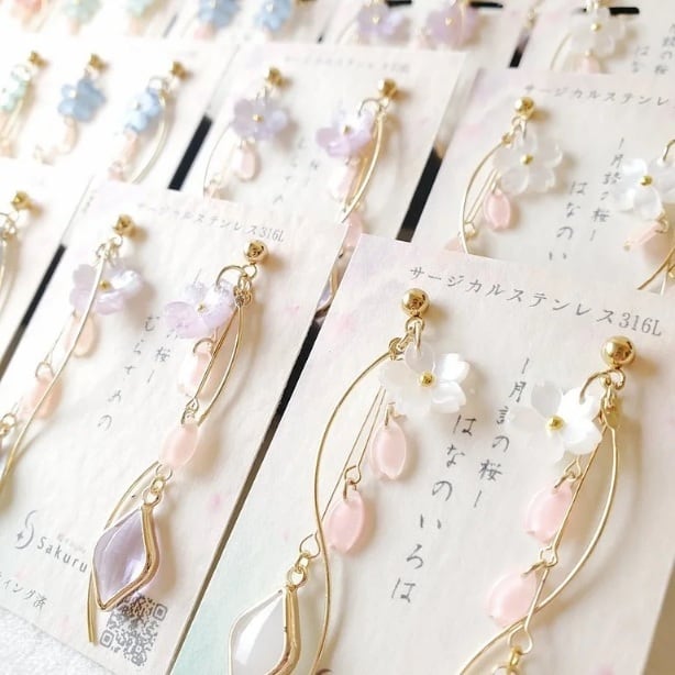 *細いピアノ線を使っているため絡まることがあります。1度耳飾りを振って元の位置にお戻し下さい。