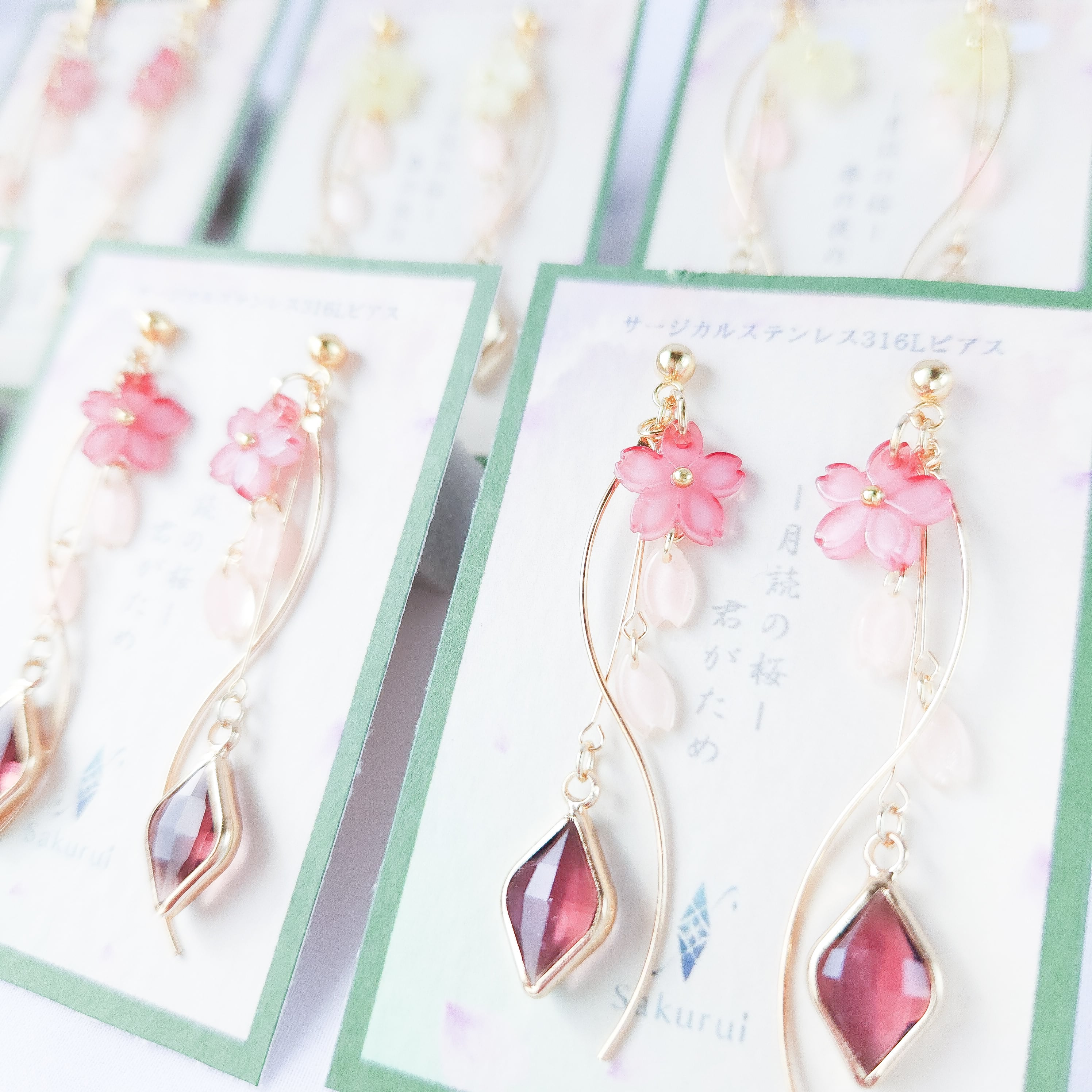*ガラスパーツになりますので、透かした際/台紙がある際/太陽光に当てた時/など、色の見え方がそれぞれ変化します。それも楽しんで頂けましたら幸いです。