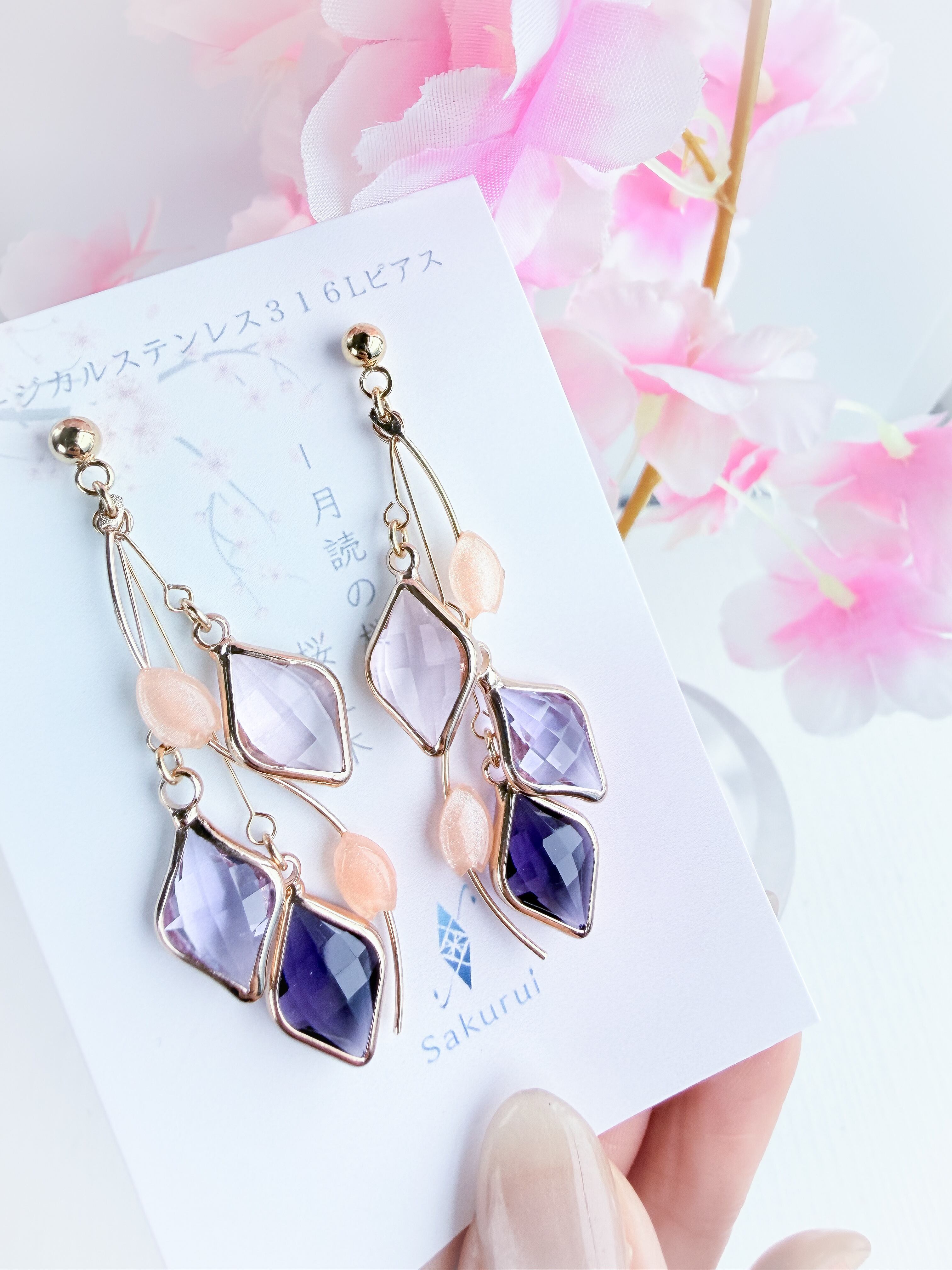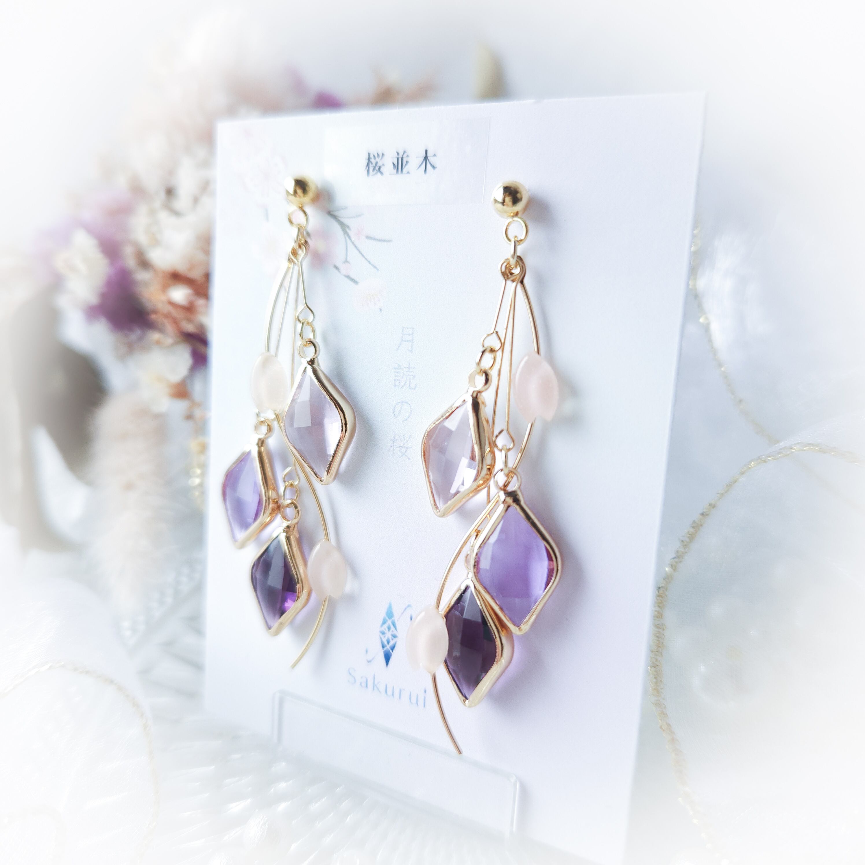*細いピアノ線を使っているため絡まることがあります。1度耳飾りを振って元の位置にお戻し下さい。