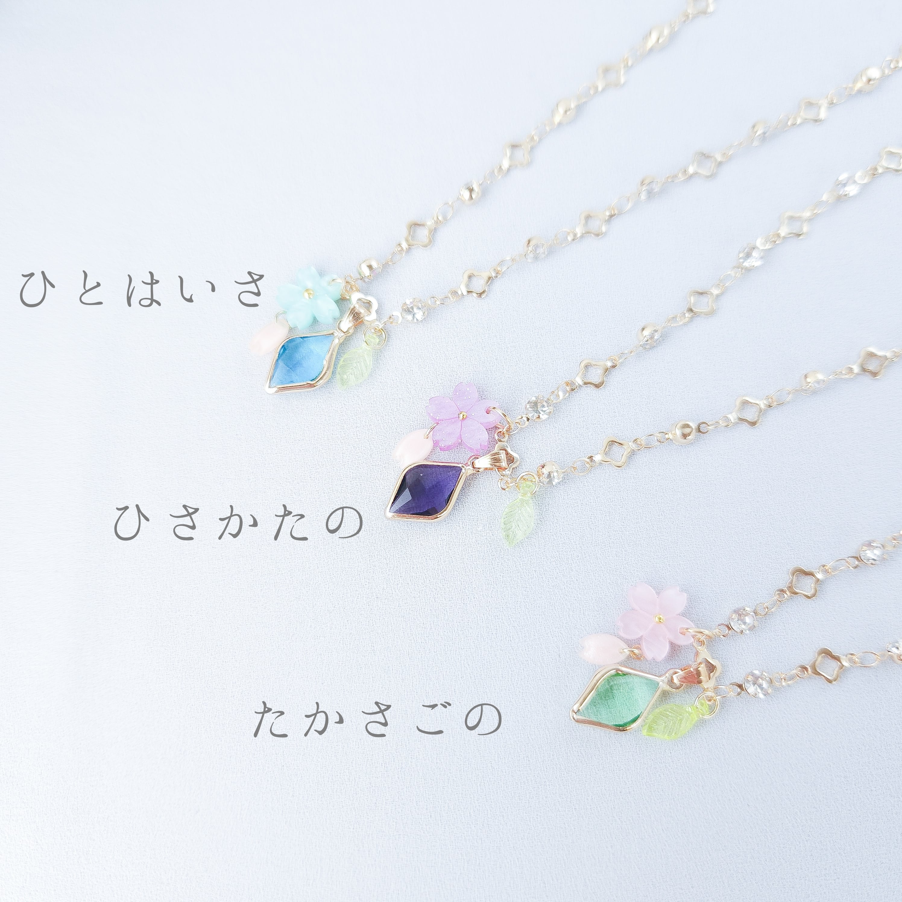 *ガラスパーツになりますので、透かした際/台紙がある際/太陽光に当てた時/など、色の見え方がそれぞれ変化します。それも楽しんで頂けましたら幸いです。