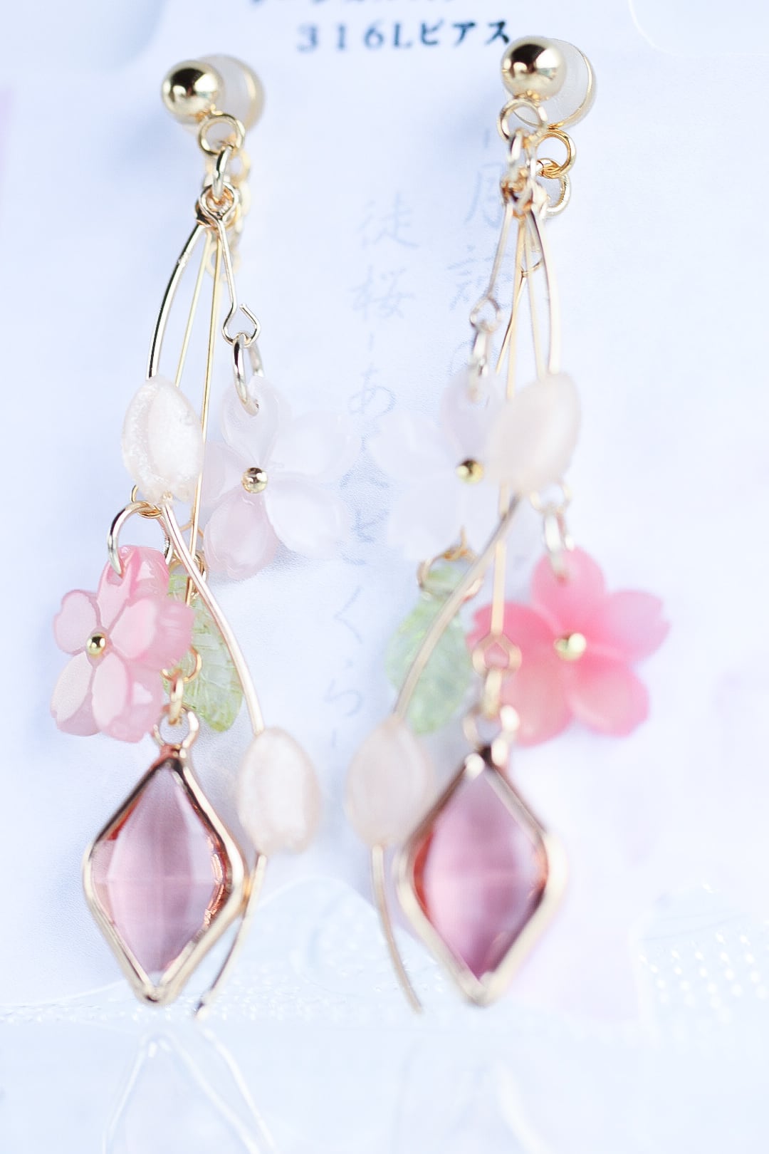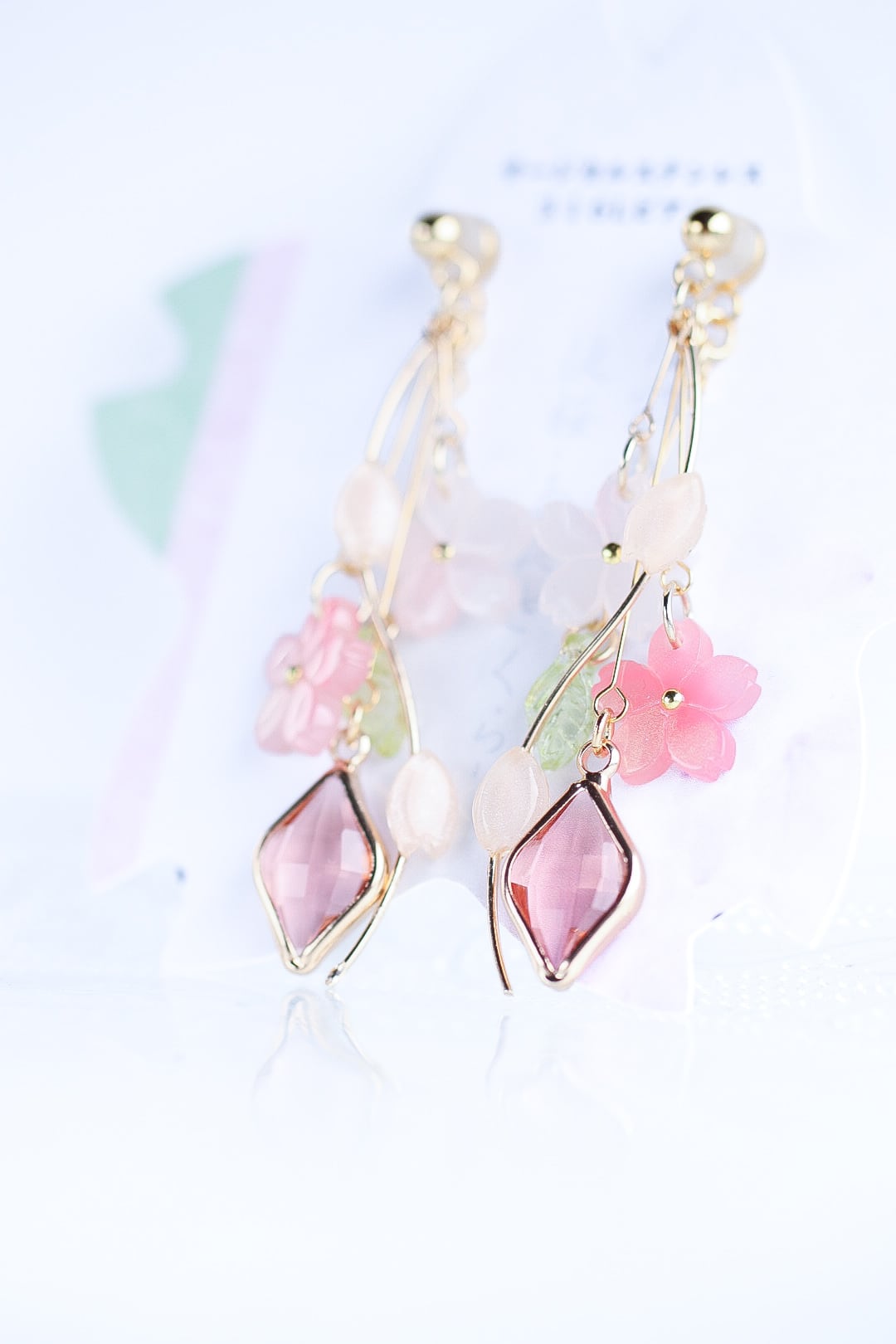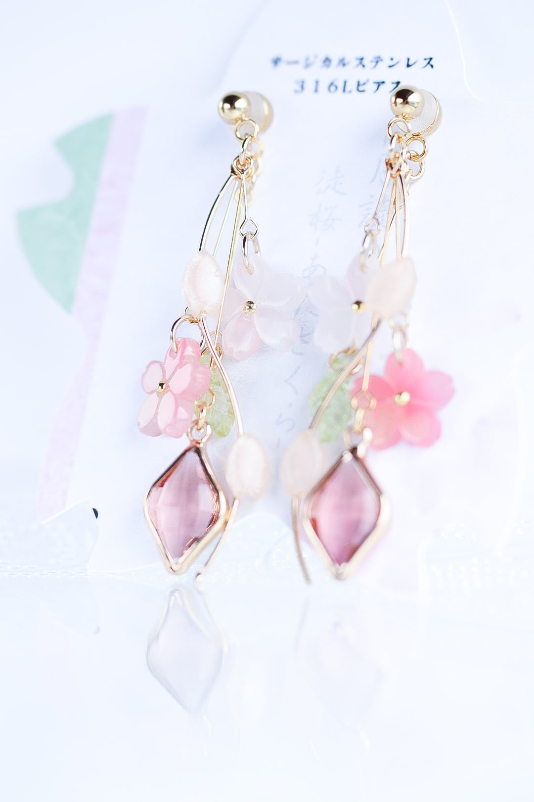 しっとりとしたピンクのガラスチャームは、可憐さと大人の上品さを両立。