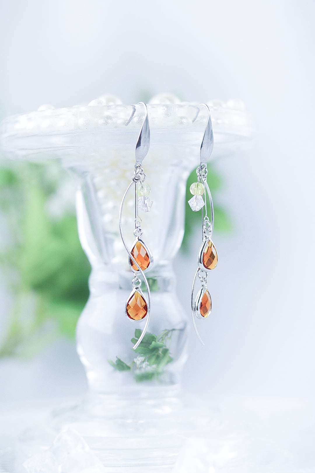 【新色】-月読の雫-『 橙 』 耳飾り 2連リング